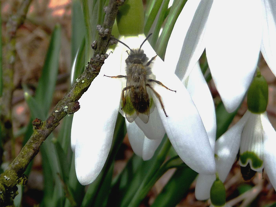 Eine andere typische Frühjahrspflanze, bei der sogar die Blüten frosthart sind, ist das Gewöhnliche Schneeglöckchen (Galanthus nivalis L.). Es bevorzugt eher feuchte, nährstoffreiche Standorte.